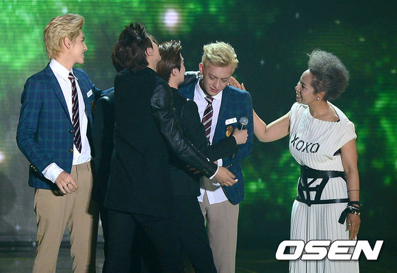 2013 베스트송상을 수상한 그룹 엑소의 타오가 수상 소감을 말하던 중 눈물을 흘리고 있다.