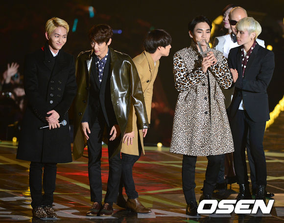 톱10에 오른 그룹 샤이니가 수상 소감을 말하고 있다.