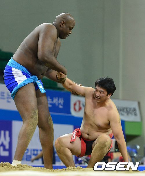 그러나 존슨은 상대의 등에 뭍은 모래를 털어주며 우정을 확인했다. 또 카메라를 향해서는 밝은 웃음을 지어 보였다. 거인은 그렇게 씨름과 한국의 문화에 빠져 즐거운 시간을 보내고 있다.