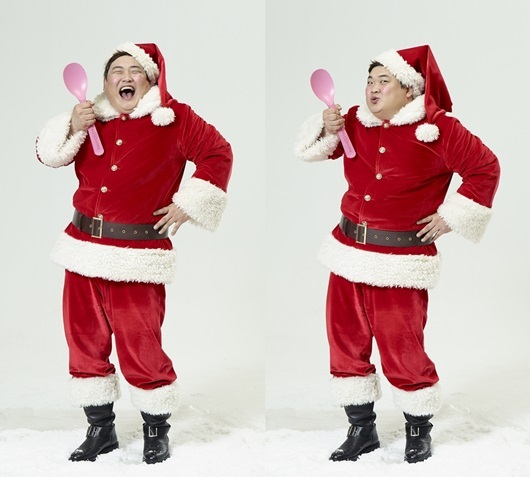 사진 속 김준현은 빨간 모자와 산타클로스 복장 등으로 크리스마스 분위기를 한껏 자아내고 있다. 큼지막한 숟가락을 손에 들고 있는 그의 아이같이 해맑은 미소와 애교 섞인 눈웃음, 푸근한 볼 살이 귀여운 매력을 더해 시선을 사로잡는다.
