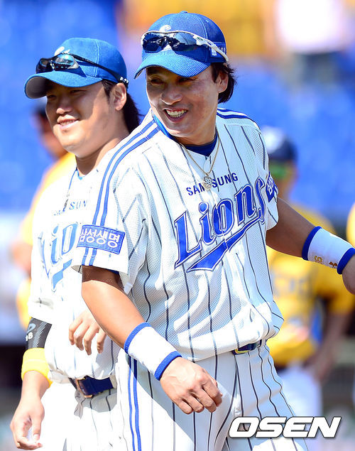 삼성 이승엽과 박석민이 미소를 짓고 있다.