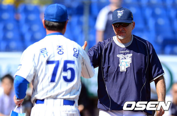 삼성 류중일 감독과 로프티두도 마르코 난니 감독이 악수를 나누고 있다.