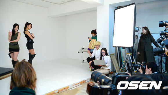 김나희와 이수정이 광고 촬영을 하고 있다.
