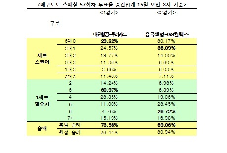 2013-2014시즌 프로배구 대상 배구토토 스페셜 57회차 중간집계 결과
