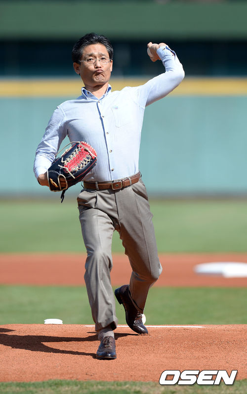 KBO 양해영 사무총장이 시구를 하고 있다.