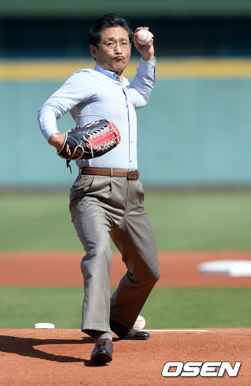 KBO 양해영 사무총장이 시구를 하고 있다.