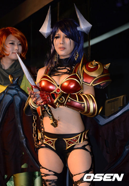 15일 부산 해운대 벡스코(BEXCO)에서 열린 국제게임전시회 '지스타 2013'에서 도타 코스프레 모델이 포토타임을 갖고 있다.