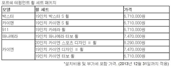 국내 포르쉐 공식 수입사 스투트가르트 스포츠카가 18일부터 12월 31일까지 '2013 테큅먼트 휠 & 윈터 타이어 프로모션'을 진행한다.