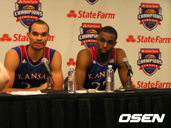 캔자스대학의 페리 엘리스(좌)와 앤드류 위긴스(우)