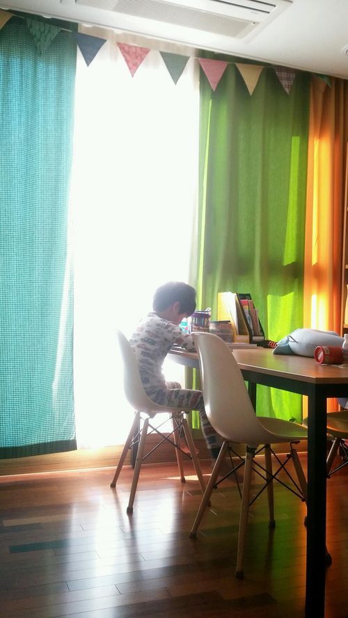 사진 속에는 내복으로 보이는 알록달록한 무늬의 옷을 입고 책상에 앉아 있는 준수의 모습이 보인다. 커튼 사이로 비치는 햇빛을 받으며 독서 삼매경에 빠진 준수의 차분한 모습이 예능 프로그램에서 아빠와 몸싸움을 하는 개구쟁이 캐릭터와는 사뭇 달라 반전의 묘미를 준다.