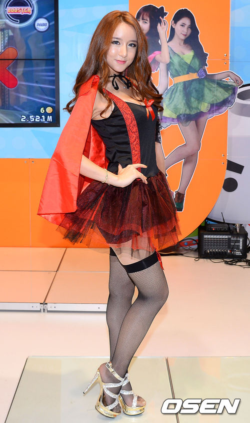 15일 부산 해운대 벡스코(BEXCO)에서 열린 국제게임전시회 '지스타 2013'에서 부스걸 이연윤이 포토타임을 갖고 있다.
