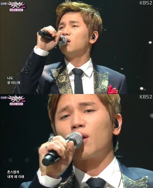 케이윌은 15일 오후 방송된 KBS 2TV '뮤직뱅크'(MC 보라, 박서준)에서 '촌스럽게 왜 이래'를 열창했다.