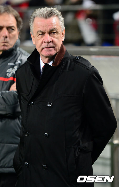 경기에 앞서 스위스 히츠펠트 감독이 그라운드를 바라보고 있다.