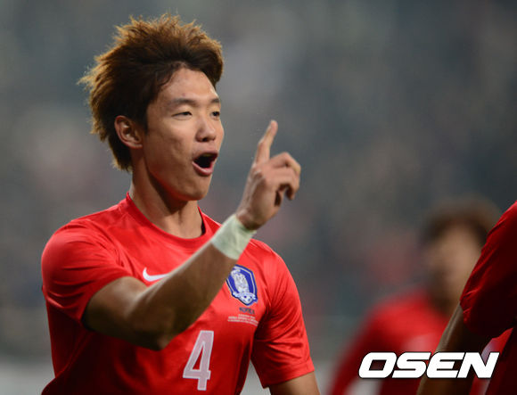 후반 한국 홍정호가 동점골을 성공시키고 기뻐하고 있다.