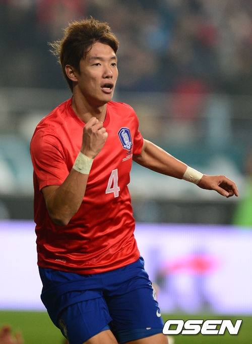 하지만 한국의 거센 공격은 얼마 있지 않아 스위스의 골문을 열었다. 후반 14분 코너킥 상황에서 기성용이 올린 크로스를 먼 포스트로 쇄도하던 홍정호가 헤딩으로 연결해 골을 기록했다. 홍정호는 수비수들의 시선을 김신욱이 사로잡은 틈을 타 여유있게 골로 연결했다.