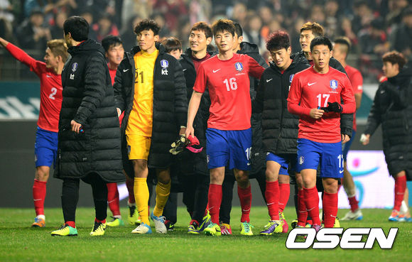 경기후 한국 선수들이 팬들에 인사를 하고 있다./jpnews@osen.co.kr
