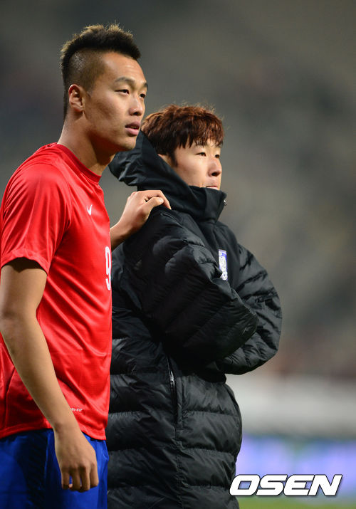 경기후 한국 김신욱과 손흥민이 팬들에 인사를 하고 있다./jpnews@osen.co.kr