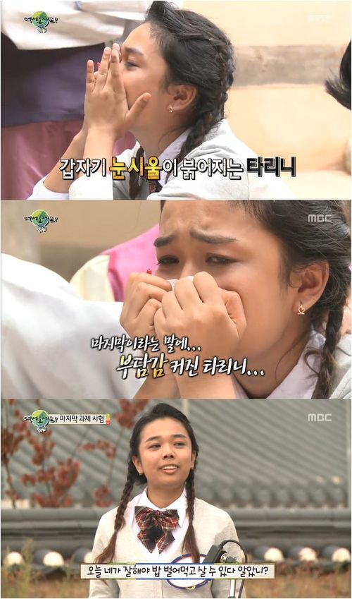 한국에서 개그우먼으로 활동하고 싶다는 타리니는 이날 문제를 맞히지 못하자 갑자기 눈물을 터뜨렸다. 그는 “공부했는데 생각이 안 난다”고 속상해 했다.