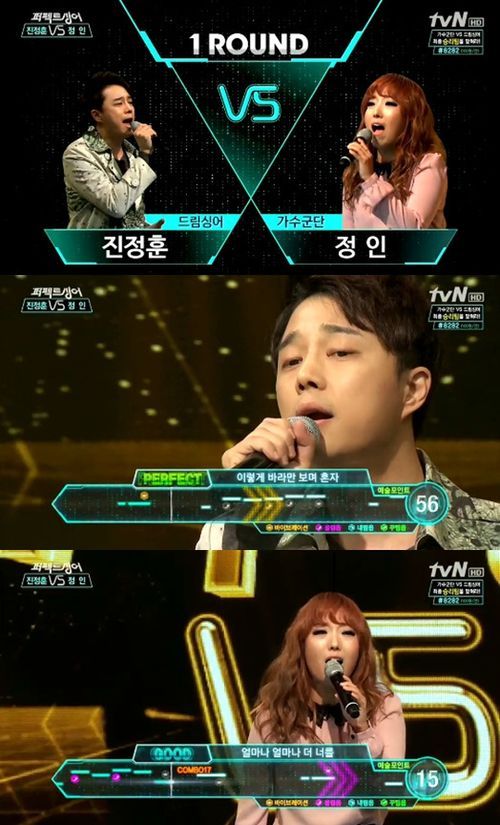 진정훈은 15일 오후 방송된 케이블채널 tvN 예능프로그램 '퍼펙트싱어 VS'에서 드림팀의 첫 주자로 나서 정인과 우열을 가릴 수 없는 박빙의 승부를 펼쳤다.