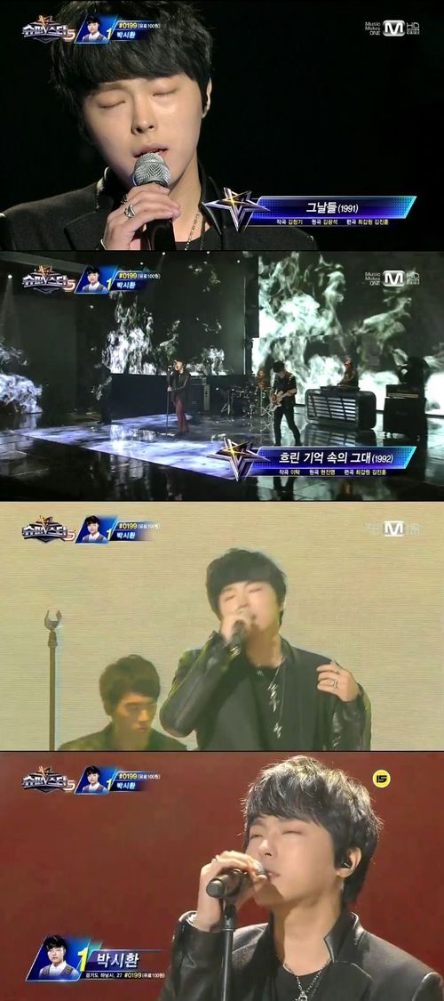 박시환은 15일 오후 생방송된 케이블채널 엠넷 오디션프로그램 '슈퍼스타K5'(이하 '슈스케5')에서 가수 故김광석의 '그날들', 현진영의 '흐린 기억 속의 그대'를 자율선곡 곡으로 선택, 열창했다.