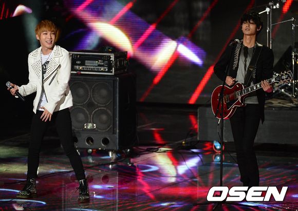 딕펑스와 정준영이 15일 밤 서울 잠실실내체육관에서 열린 케이블채널 엠넷 오디션 프로그램 '슈퍼스타K 5' 결승전에서 멋진 무대를 선보이고 있다.
