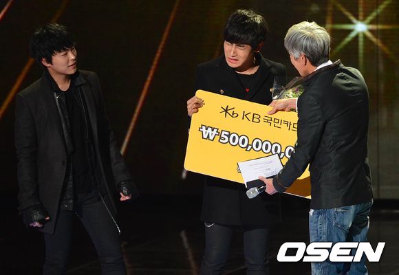 박재정이 15일 밤 서울 잠실실내체육관에서 열린 케이블채널 엠넷 오디션 프로그램 '슈퍼스타K 5' 결승전에서 우승을 차지한 뒤 상금패를 전달받으며 감격스러워하고 있다.