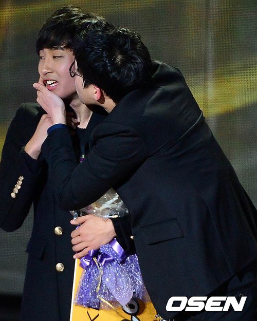 임순영이 15일 밤 서울 잠실실내체육관에서 열린 케이블채널 엠넷 오디션 프로그램 '슈퍼스타K 5' 결승전에서 우승을 차지한 박재정에게 볼키스를 하며 축하를 전하고 있다.