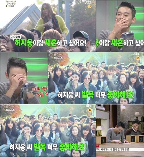 대학 정문 앞에 가득 모인 학생들은 ‘마녀사냥’의 인기가 얼마나 뜨거운지를 엿볼 수 있게 했다. 특히 한 여대생은 “저 허지웅이랑 재혼하고 싶어요”라고 적극적으로 고백해 눈길을 끌었다.