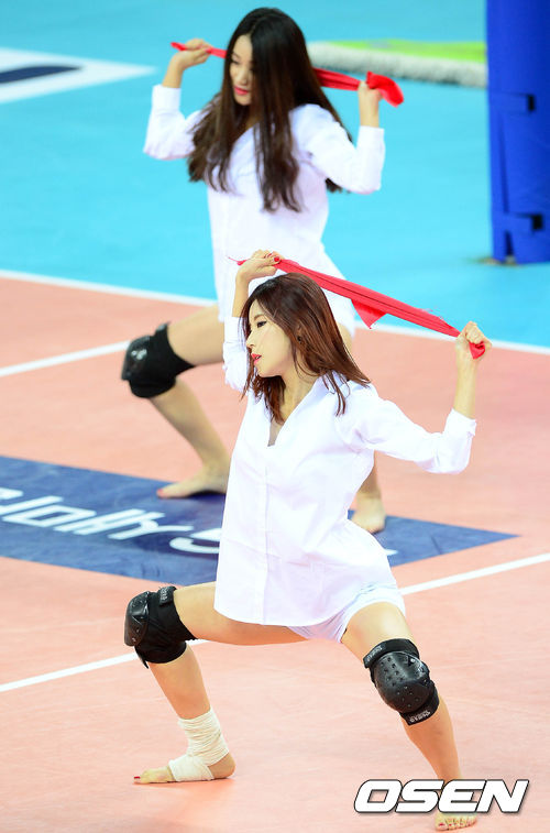 16일 오후 인천계양체육관에서 열린 '2013-2014 NH농협 V리그' 남자부 대한항공과 우리카드의 경기, 치어리더들이 공연을 펼치고 있다.