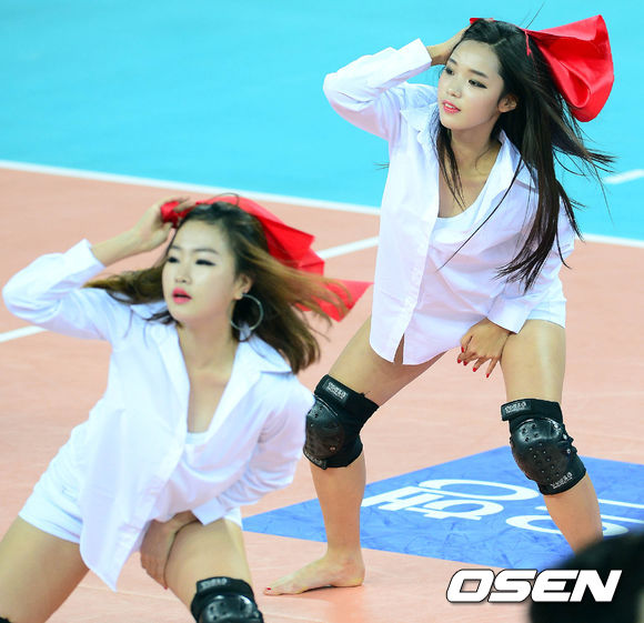 16일 오후 인천계양체육관에서 열린 '2013-2014 NH농협 V리그' 남자부 대한항공과 우리카드의 경기, 치어리더들이 공연을 펼치고 있다.