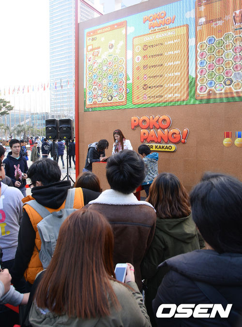 16일 부산 해운대 벡스코(BEXCO)에서 열린 국제게임전시회 '지스타 2013'에서 포코팡 부스를 찾은 관객들을 게임체험을 위해 순서를 기다리며 게임경기를 지켜보고 있다.