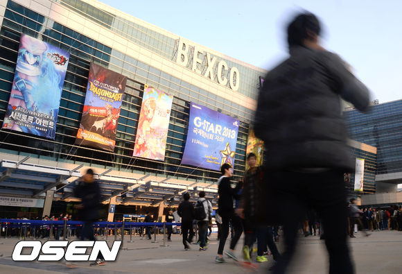 16일 부산 해운대 벡스코(BEXCO)에서 열린 국제게임전시회 '지스타 2013'를 찾은 관객들이 바쁜 발걸음을 옮기고 있다.