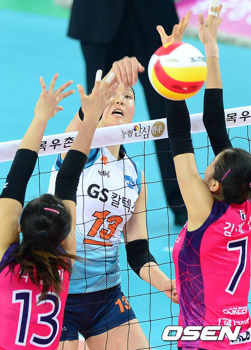 16일 오후 인천계양체육관에서 열린 '2013-2014 NH농협 V리그' 여자부 흥국생명과 GS칼텍스의 경기 1세트 정대영이 공격을 시도하고 있다.
