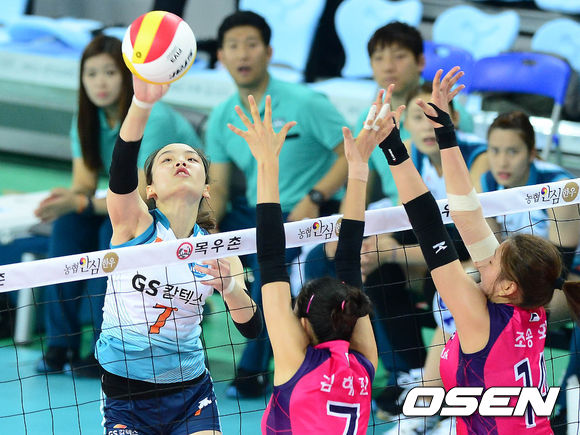 16일 오후 인천계양체육관에서 열린 '2013-2014 NH농협 V리그' 여자부 흥국생명과 GS칼텍스의 경기 1세트 김지수가 공격을 시도하고 있다.