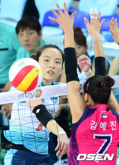 16일 오후 인천계양체육관에서 열린 '2013-2014 NH농협 V리그' 여자부 흥국생명과 GS칼텍스의 경기 1세트 김지수가 공격을 시도하고 있다.