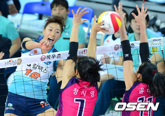 16일 오후 인천계양체육관에서 열린 '2013-2014 NH농협 V리그' 여자부 흥국생명과 GS칼텍스의 경기 1세트 한송이가 공격을 시도하고 있다.