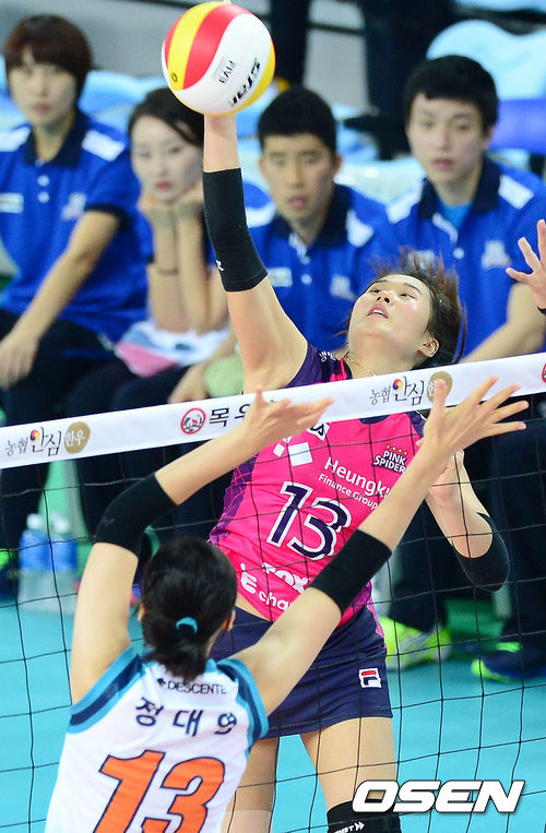 16일 오후 인천계양체육관에서 열린 '2013-2014 NH농협 V리그' 여자부 흥국생명과 GS칼텍스의 경기 2세트 박성희가 공격을 시도하고 있다.