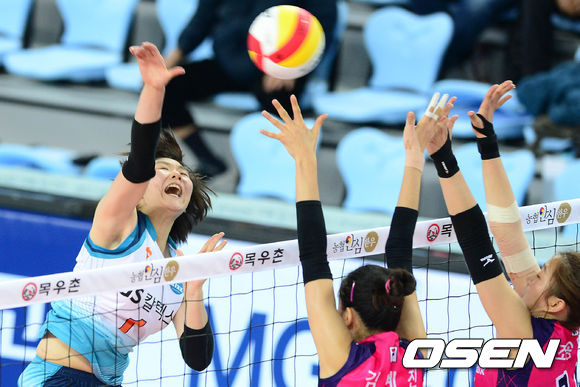 16일 오후 인천계양체육관에서 열린 '2013-2014 NH농협 V리그' 여자부 흥국생명과 GS칼텍스의 경기 2세트 이소영이 공격을 시도하고 있다.