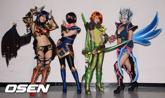 16일 부산 해운대 벡스코(BEXCO)에서 열린 국제게임전시회 '지스타 2013'에서 도타2 코스프레 모델 오고은 이혜민 이지은 오시은이 포토타임을 갖고 있다.