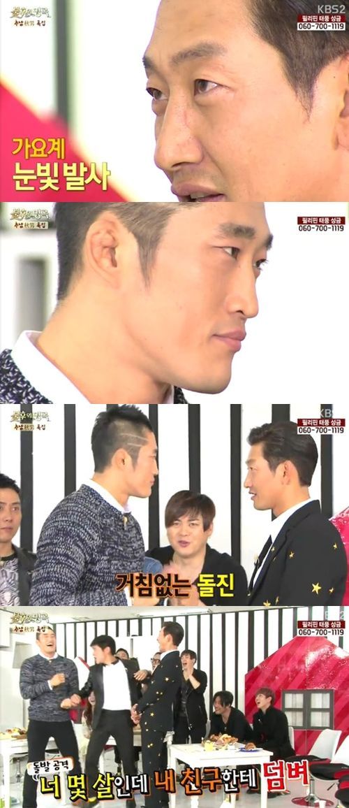 이에 김동현은 김창렬과 눈싸움을 하며 자신감 찾기에 돌입했다. 김동현과 김창렬은 팽팽한 눈싸움을 시작했지만 임창정이 "너 몇살인데 내 친구한테 덤비냐"고 난입해 대결이 무산, 웃음을 자아냈다.