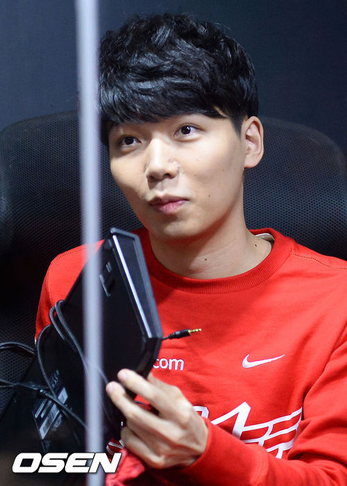 CJ 블레이즈 vs SK텔레콤 1팀의 16강 경기, SK 텔레콤 장경환이 경기준비를 하고 있다.