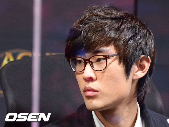 CJ 블레이즈 vs SK텔레콤 1팀의 16강 경기에 앞서 CJ 블레이즈 강찬용이 경기준비를 하고 있다.
