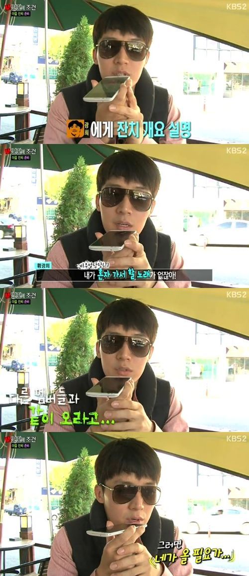 이에 허경환은 "멤버들과 같이 와"라고 했지만 광희는 다른 멤버들은 스케줄이 있다고 설명했고, 허경환은 "그럼 네가 올 필요가 없다"고 답했다.