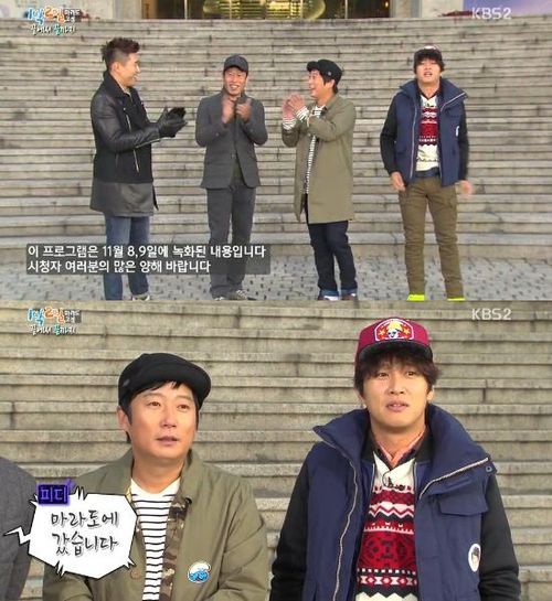 이수근은 17일 오후 방송된 '해피선데이-1박2일'에서 멤버들과 마지막 여행을 떠났다. 그는 통편집 대신 "이 프로그램은 11월 8, 9일에 녹화된 내용입니다. 시청자 여러분의 많은 양해 바랍니다"라는 방송 초반 자막과 함께 등장했다.