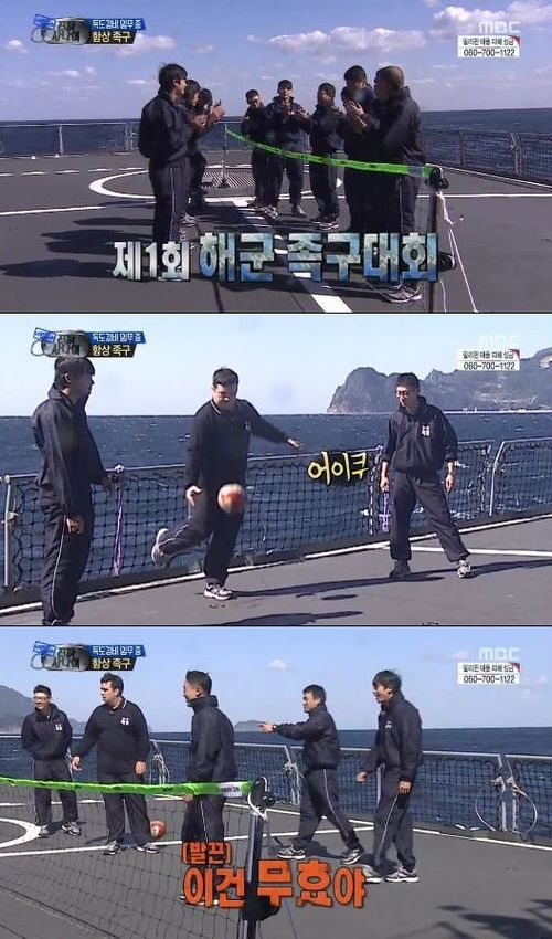 이날 멤버들은 주말을 맞아 배 위에서 함상 족구를 하기로 했다. 배 위에서 하는 족구이기 때문에 공에 줄을 다는 흥미로운 모습이 펼쳐졌고, 멤버들 역시 이에 신기해 했다.