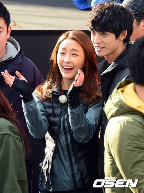 정유미와 정준영이 스타트라인에서 미소를 짓고 있다.