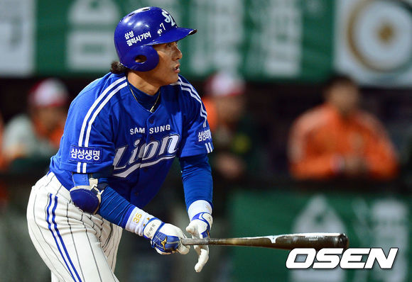 3회초 2사 1루 삼성 이승엽이 타구를 바라보고 있다.