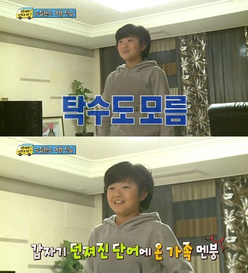 그러나 외모만 의젓해졌을 뿐, 탁수의 장난기는 여전했다. 짐을 싸고 있는 아빠 이종혁 옆에서 헐크 가면을 쓰고 준수와 장난치기 바빴던 것.