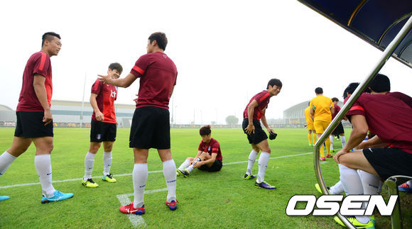 대표팀 선수들이 훈련 준비를 하고 있다.