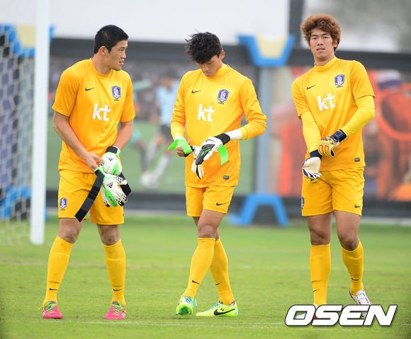 정성룡, 김승규, 이범영이 훈련 준비를 하고 있다.